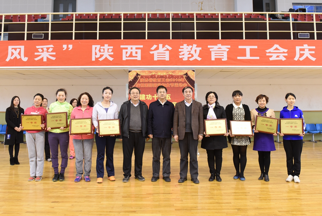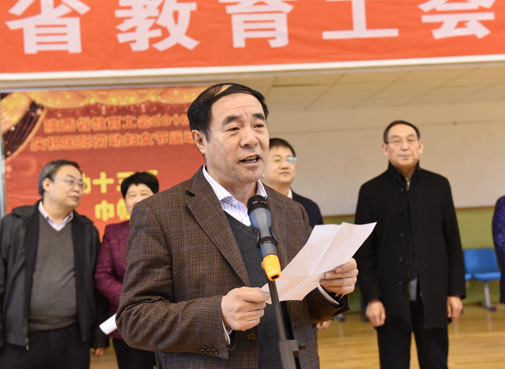 3月4日下午,“建功十三五,巾帼展风采”陕西省教育工会2016年庆祝国际劳动妇女节运动会在我校长安校区举行。陕西省高教工委委员、统战部部长李智军,陕西省总工会女职工委员会主任、省妇联副主席李秀华,陕西省总工会副巡视员、省教育工会主席张敏,副主席张朝惟,我校党委副书记、工会主席刘永昌出席运动会并为获奖队伍颁奖。