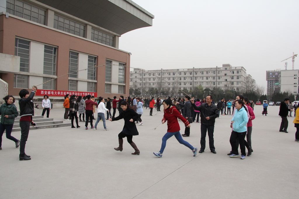 3月7日中午,我校女工委在长安校区和雁塔校区分别举行团体跳绳比赛,全校15个分工会组队参赛。女教职工个个兴致勃勃,积极参加,其乐融融。经过奋力角逐,最终计算机学院分工会、机关二分工会、电子工程学院分工会获一等奖。