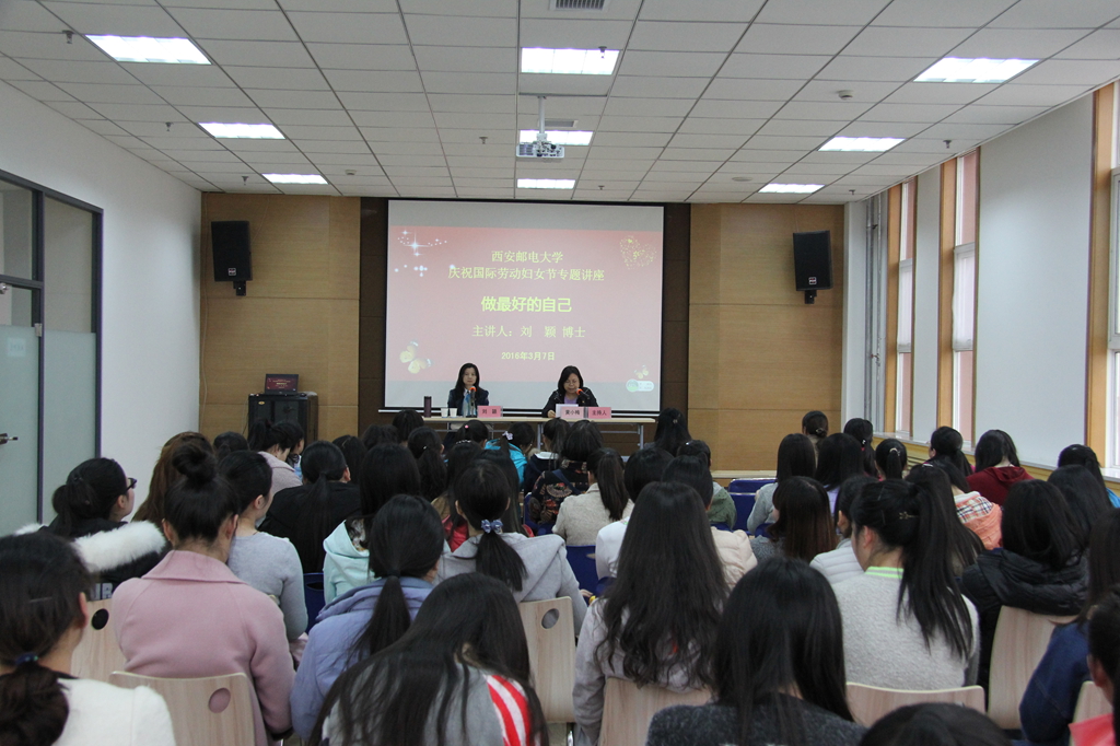 3月7日下午,我校女工委邀请通信与信息工程学院副院长、陕西省“百人计划”特聘专家刘颖博士,在长安校区东区教职工活动中心为女教职工作题为《做最好的自己》专题讲座。刘颖博士与大家分享了自身留学、科学工作以及研究生教育的经历,并围绕家庭、生活、情感培养等方面与女教职工们进行交流,鼓励大家要自信、快乐地学习成长,成就最好的自己。讲座受到广大女教职工的一致好评。
