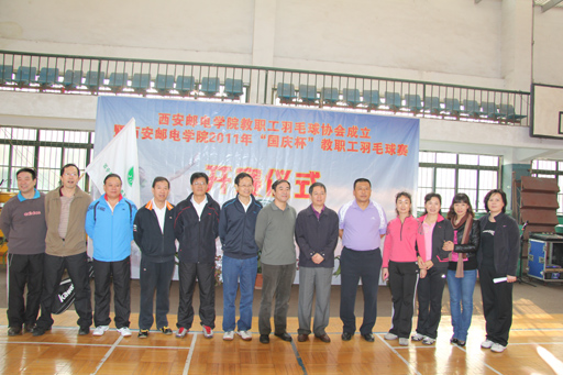 开幕式上举行了西安邮电学院教职工羽毛球协会成立仪式,贾明远副校长宣布该协会正式成立,并宣读了首届理事会成员名单。刘永昌副书记为羽协授旗。首届会长陈宏平代表羽协,倡议广大教职工积极参与学校组织的各项活动,健身强体、陶冶情操,共同营造和谐健康的校园文化氛围,为学校各项事业的发展贡献力量。