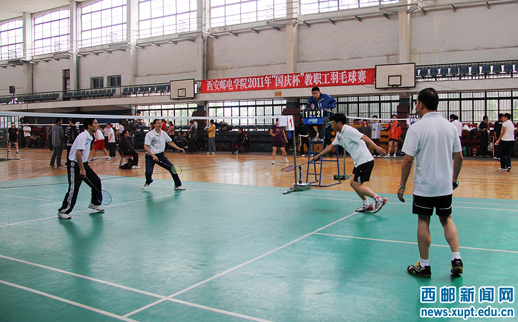 我校2011年“国庆杯”教职工羽毛球赛于9月24日、25日在雁塔校区体育馆举行。经过两天紧张激烈的角逐,机关二分会代表队凭借强大实力蝉联冠军,经济与管理学院分工会代表队、继职学院分工会代表队分获亚军和季军,电子工程学院分工会代表队荣获“最佳精神风貌奖”。副校长温小郑、苏华,党委副书记、工会主席刘永昌,副校长贾明远亲临比赛现场,并为获奖代表队颁奖。