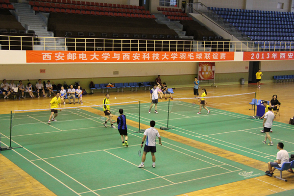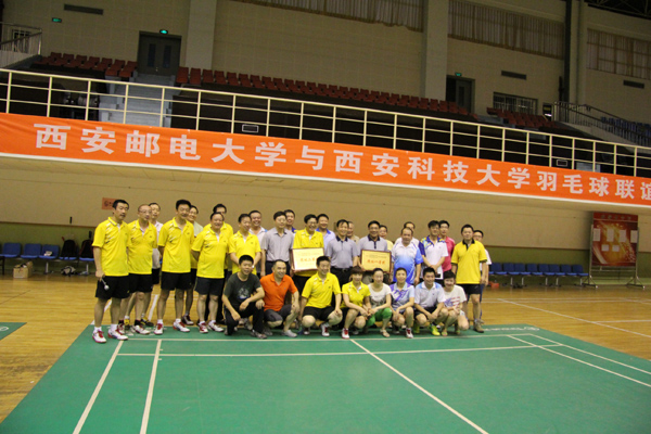 西安邮电大学与西安科技大学羽毛球联谊赛在我校长安校区体育馆举行,陕西省委教育工委常务副书记董小龙,校党委书记、校长卢建军,副校长温小郑,党委副书记、工会主席刘永昌,西安科技大学党委副书记张立杰、副校长张金锁参加比赛并为获奖团体颁奖。