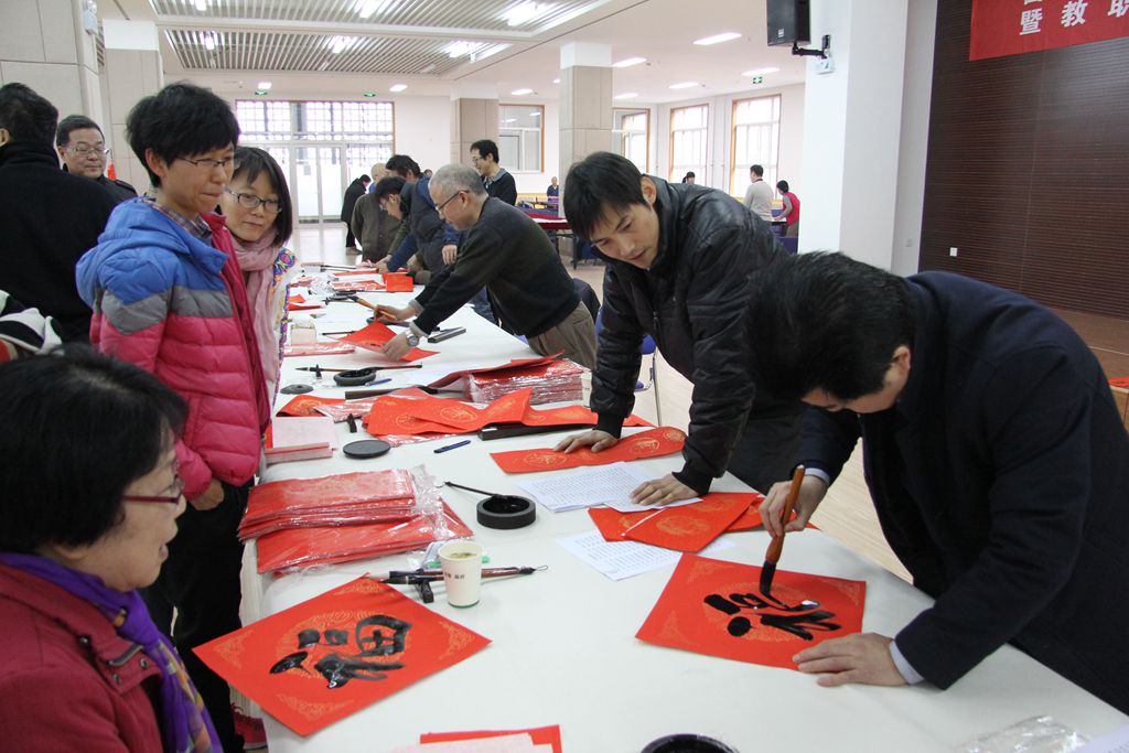 活动现场,我校教职工书画协会会员饱含热情,现场挥毫,行书、楷书、隶书各显其能,笔走龙蛇间,一幅幅精美的春联就呈现在眼前。广大教职工手捧着吉祥喜庆、翰墨飘香的春联,喜悦之情溢于言表,整个活动中心洋溢着欢乐祥和的气氛。
