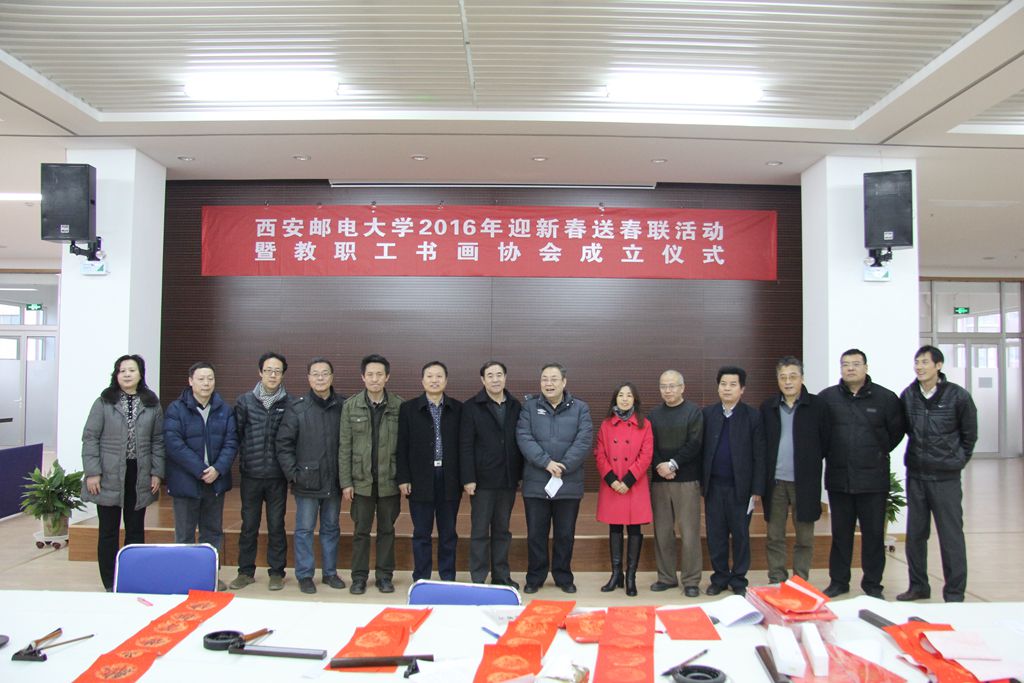 1月15下午,西安邮电大学“迎新春送春联”活动暨教职工书画协会成立仪式在教职工活动中心举行。省教育工会主席张敏、副主席张朝惟,校党委副书记、工会主席刘永昌出席活动,祝贺我校教职工书画协会成立并考察了新投入使用的教职工活动中心。