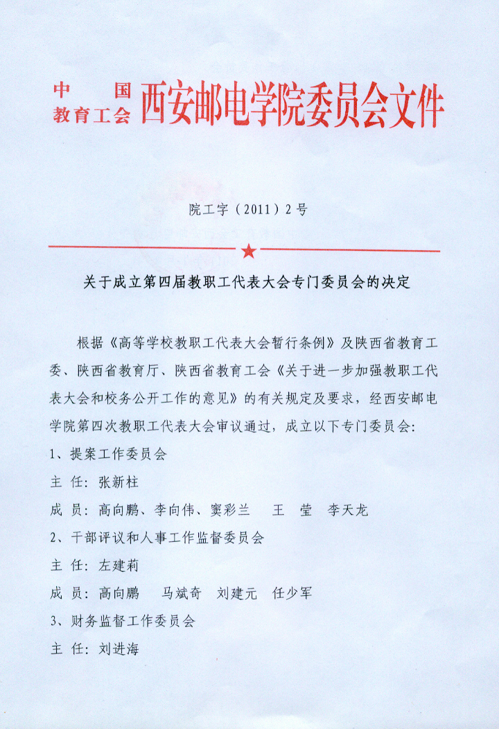 关于成立第四届教职工代表大会专门委员会的决定