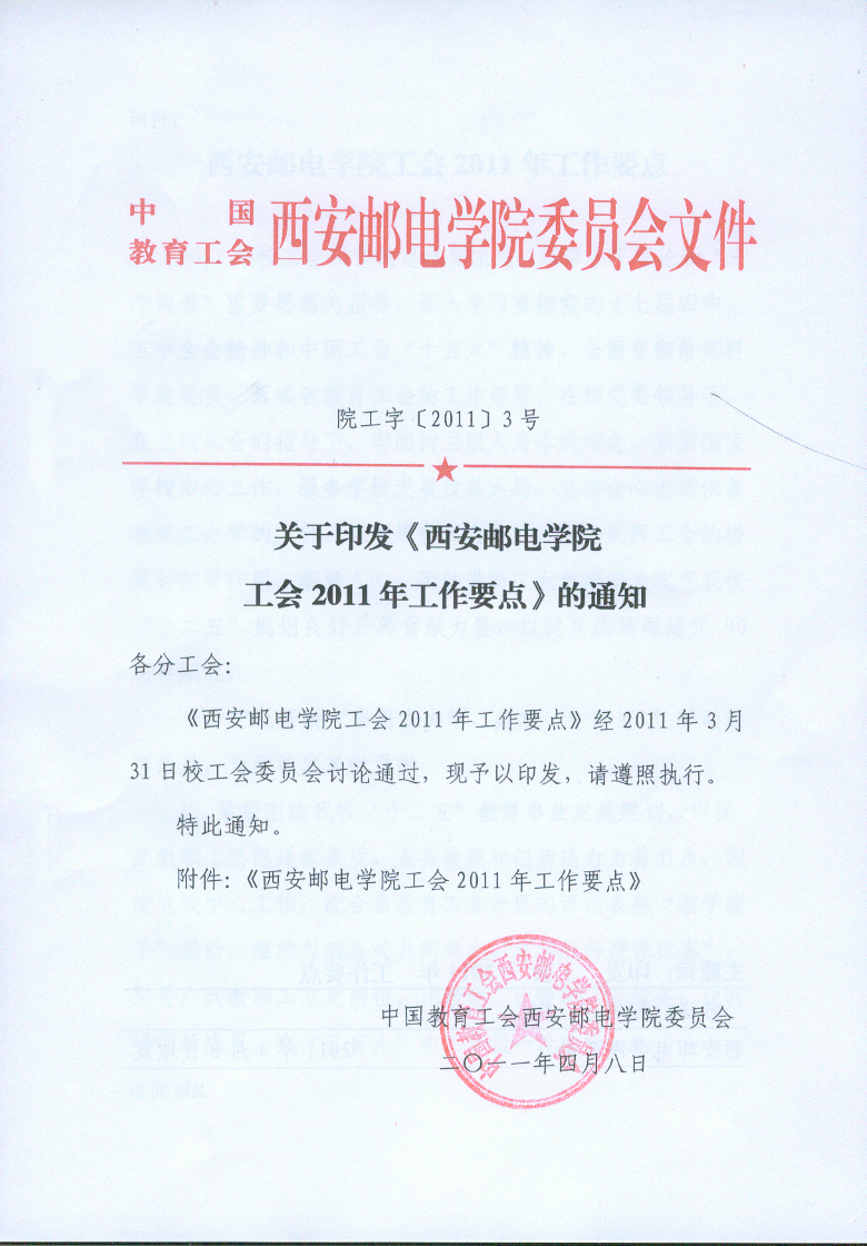 关于印发《西安邮电学院工会2011年工作要点》的通知.doc