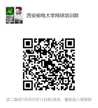3.注意事项:请自带网球拍,穿着专用网球鞋 (保障安全);培训活动其他事项将通过广讯通公告或微信群方式进行通知。加入西邮网球协会微信群请扫描右侧二维码。